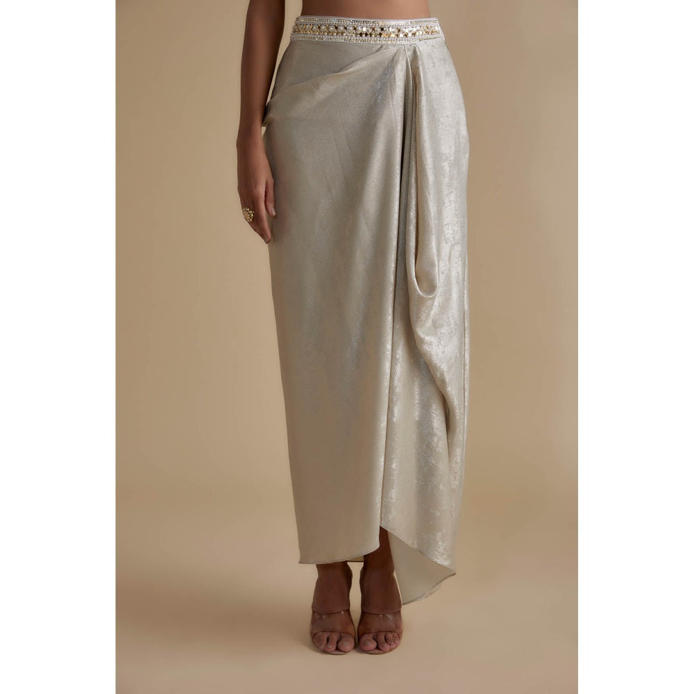 Description : Add a touch of elegance to your wardrobe with this purple cape, blouse, skirt by KEITH GOMES. Made from high-quality blended fabric. It features embellished & sequined pattern with cape, v-neck style, finished with a mid waist bottom style. Style it with an elegant matching jewelry and heels to complete the ensemble.