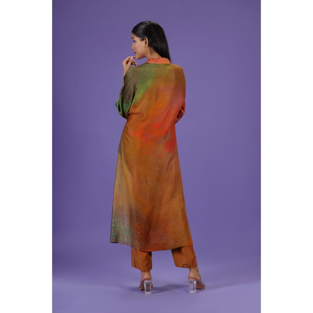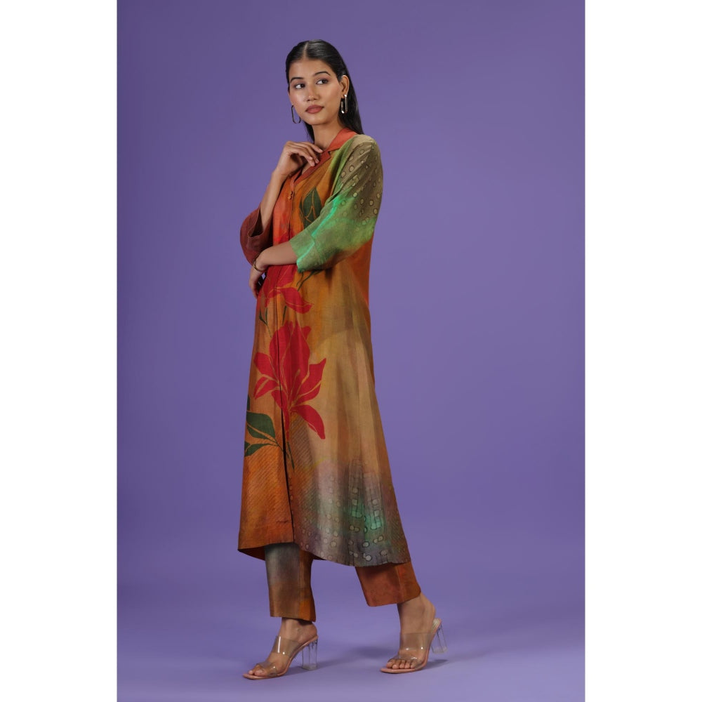 Autumn Bloom Long Kurta with Pant - Multi-Color
