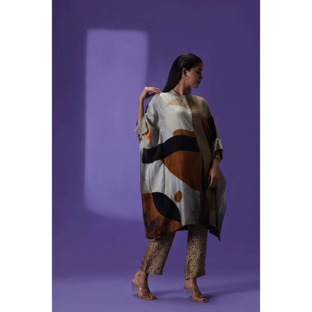 Description : Give yourself a flattering look on special occasions with this grey abstract co-ord set from Straight. Tailored in a comfortable fit, this alluring kurta is finished with flared sleeves and mandarin neck.