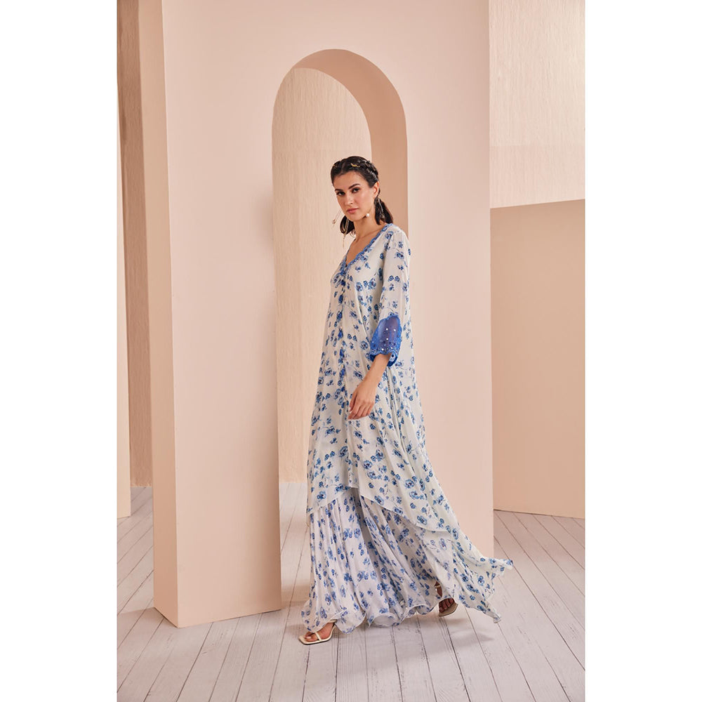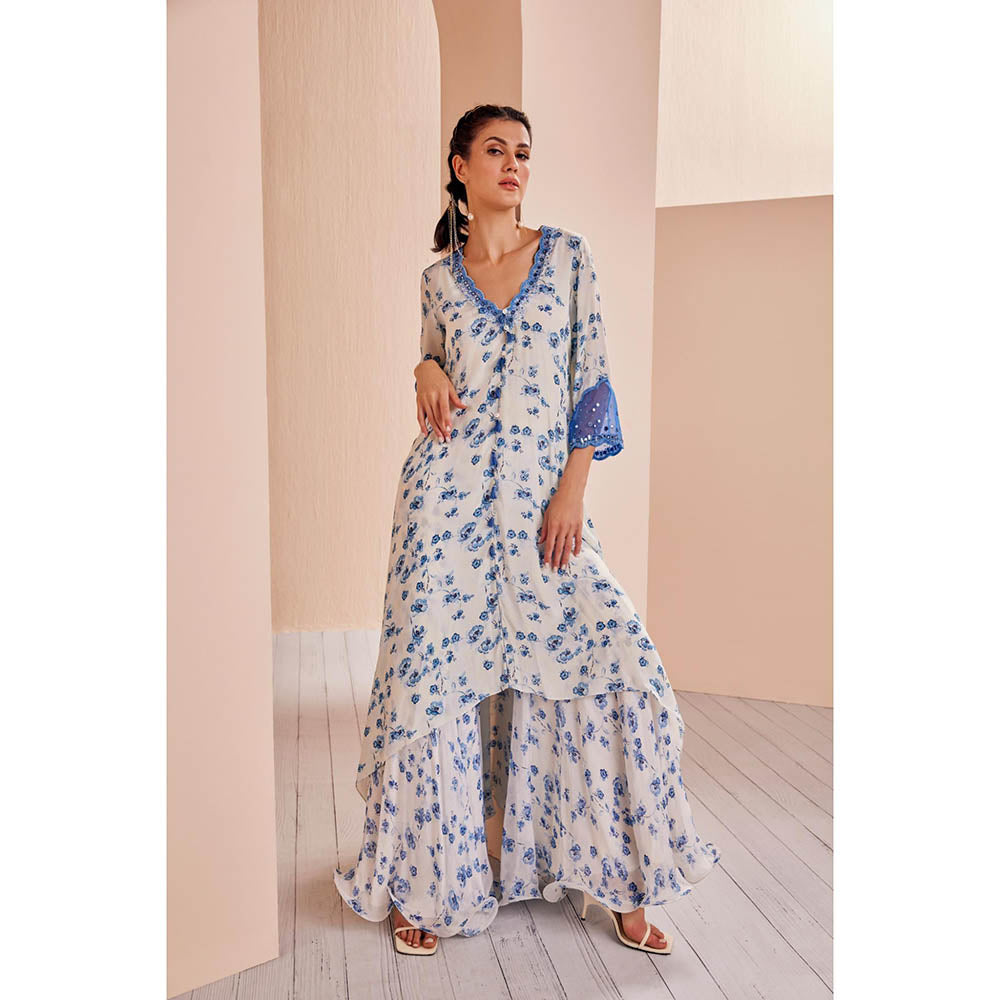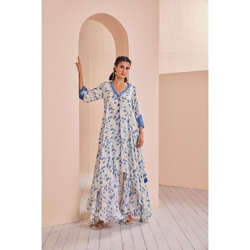 Blue Periwinkle Floral Printed Kurta and Sharara (Set of 2)