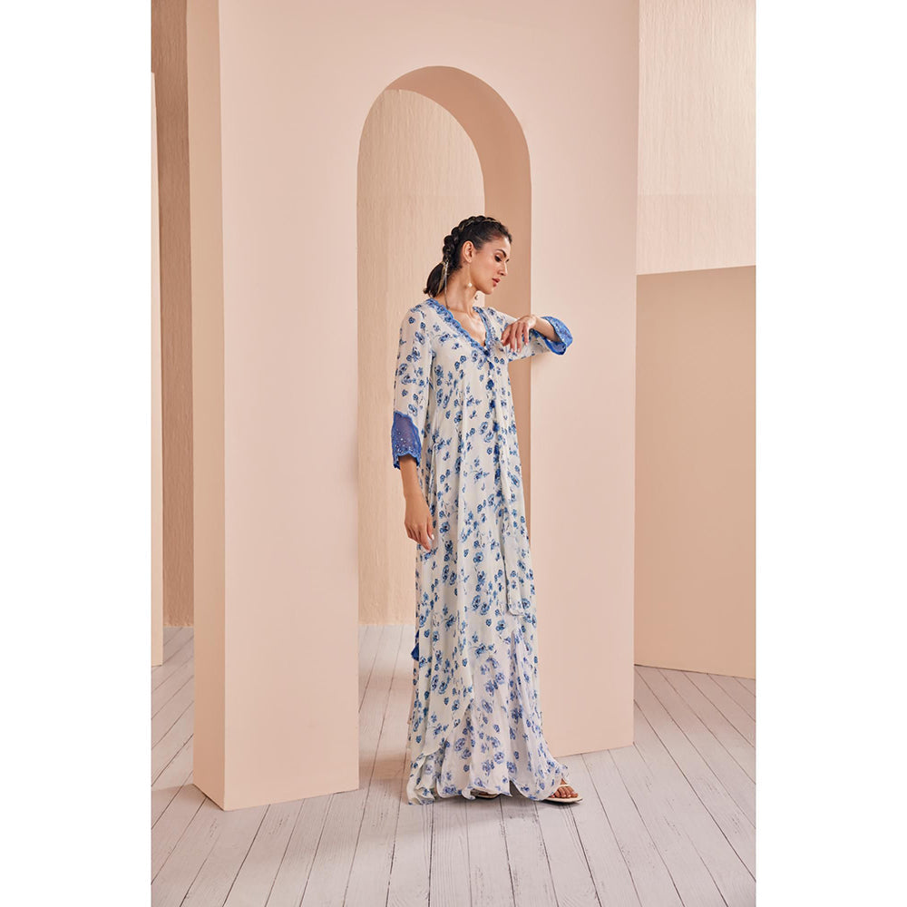 MANDIRA WIRK Blue Periwinkle Floral Printed Kurta and Sharara (Set of 2)