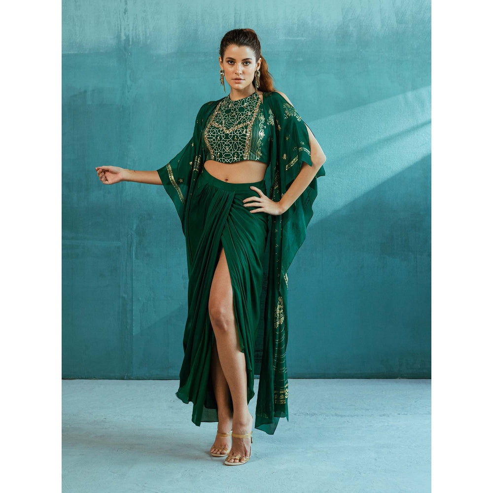 Emerald Green Cape with Blouse and Lehenga (Set of 3)