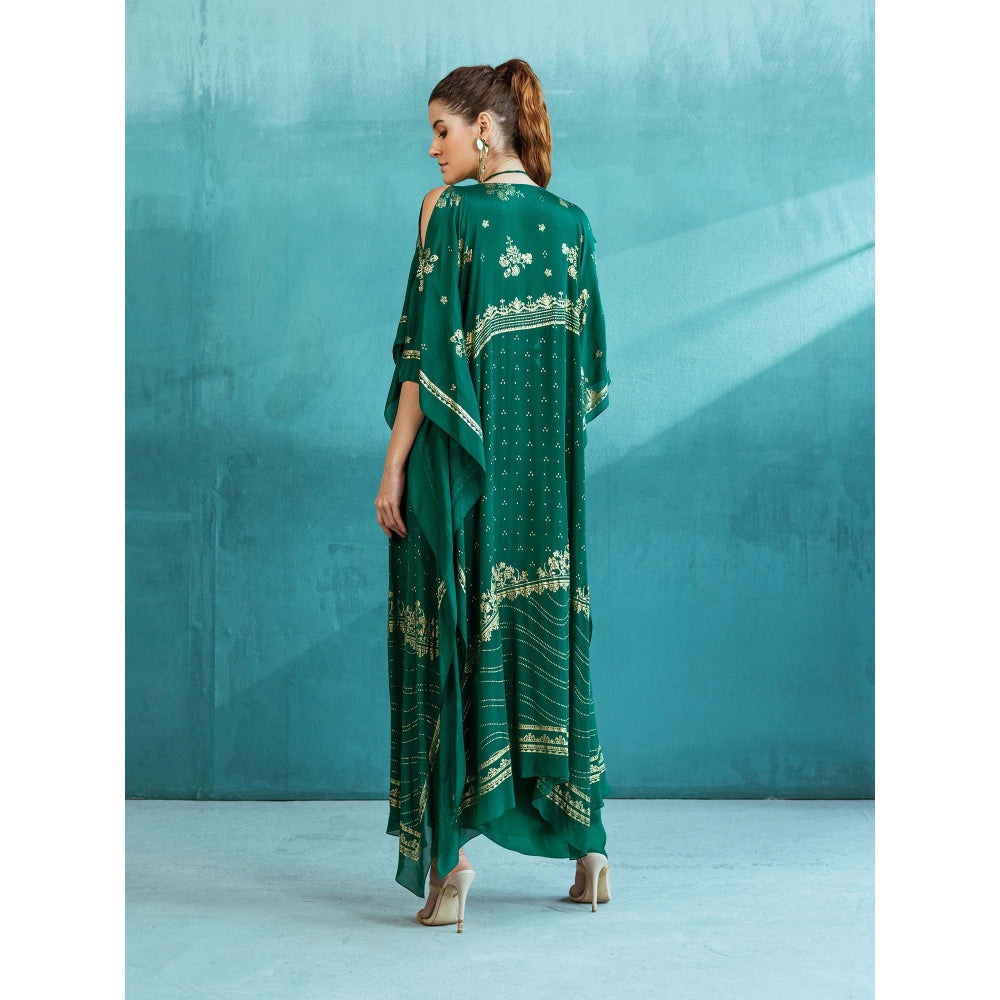MANDIRA WIRK Emerald Green Cape with Blouse and Lehenga (Set of 3)