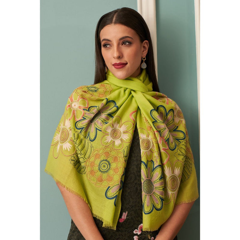 MAULI CASHMERE Floral Bliss Embroidered Fine Merino Wool Stole
