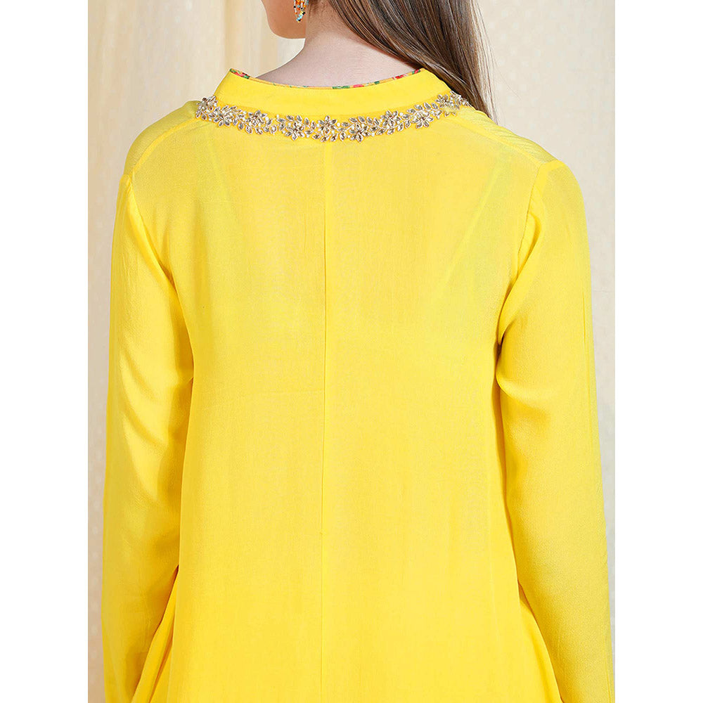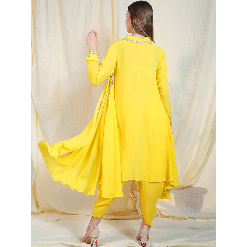 Nikasha Yellow Embellished Long Sleeves Tunic With Dhoti Pant (Set of 2)