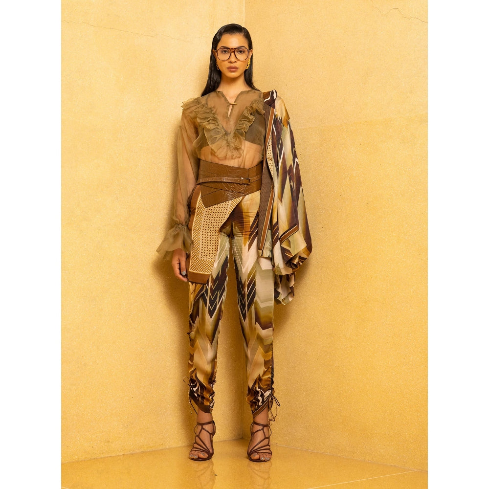 Nikita Mhaisalkar Olive Green Organza Ruffle Top