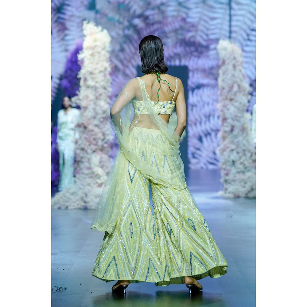Nirmooha Cool Matcha Pista Green Embroidered Blouse With Palazzo & Dupatta (Set of 3)
