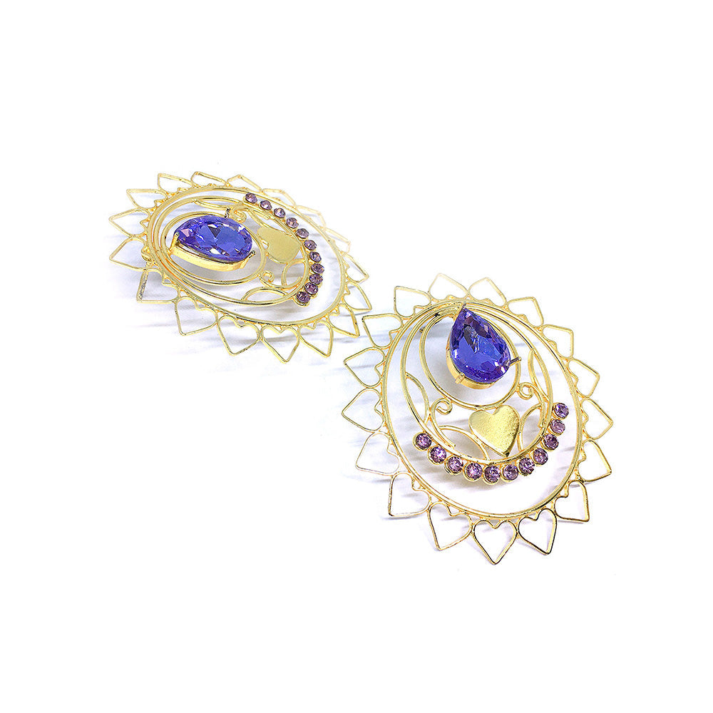 ORNAMAAS Goldplated Heart Radial Lavender Earrings
