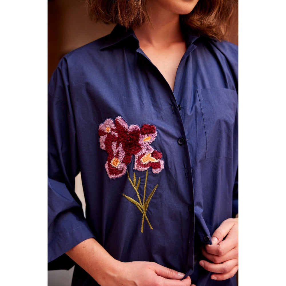 Palak Khandelwal Navy Blue Long Shirt with Flower Patches