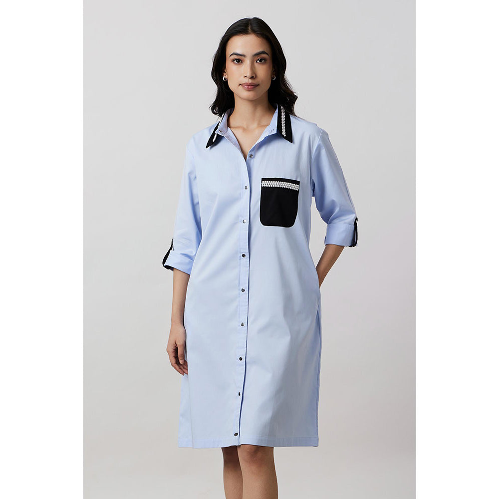 Pallavi Swadi Sky Blue Pearl Collar Pocket Shirt Dress