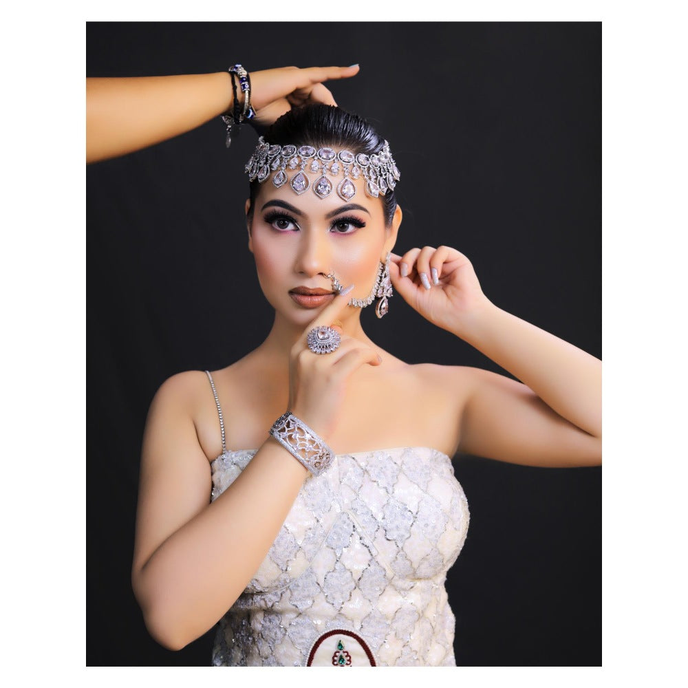 Description : Adorn the ethnic grace with this white co-ord set from Payal Dawar. Made from high quality sequin, it features zipper closure and embellished/sequined pattern along with sleeveless & shoulder straps design. Pair it with traditional footwear to complete your ensemble.