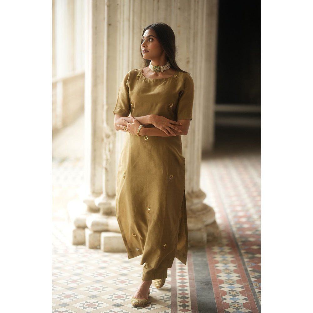 Iris Brown Chanderi Embroidered Kurta and Pant (Set of 2)