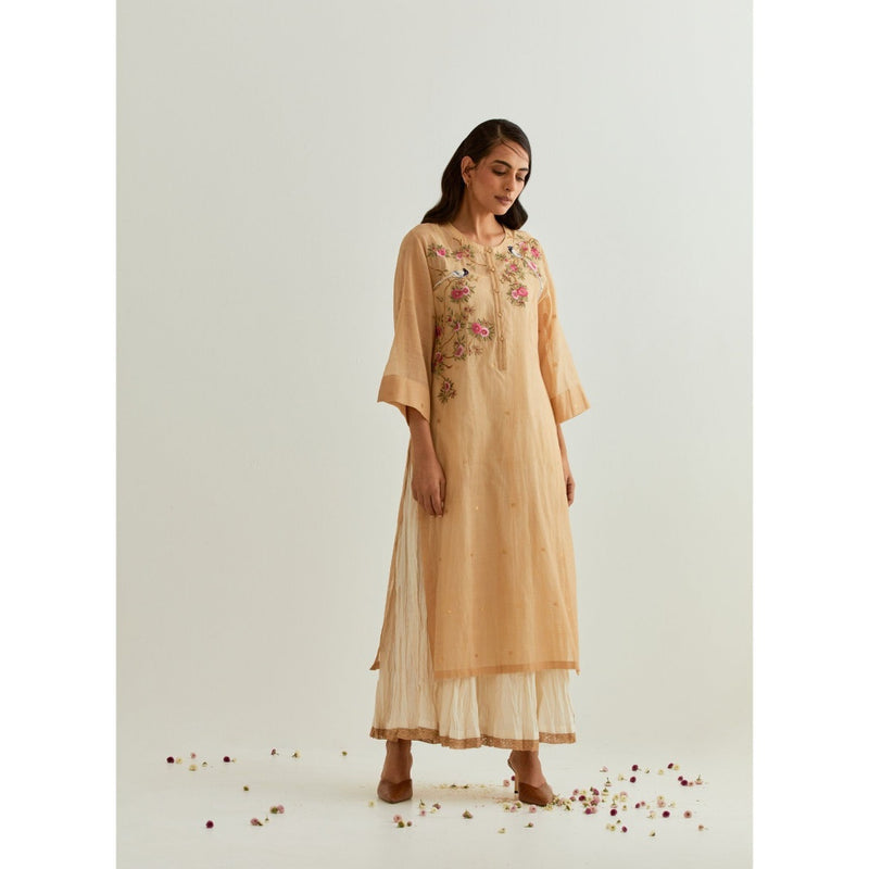 PRAMA By Pratima Pandey Floral Chanderi Beige Kurta with Inner (Set of 2)