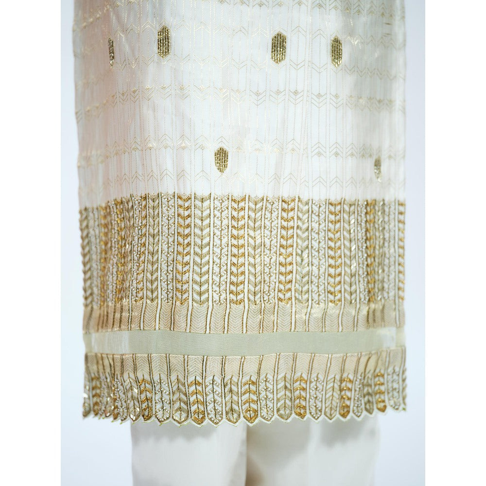 RAAG SUTRA Ivory Brocade Kurta with Palazzo (Set of 2)