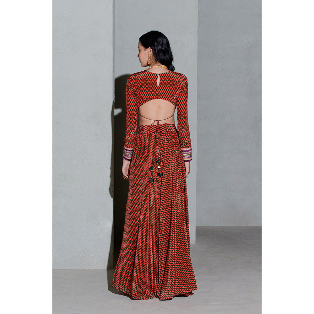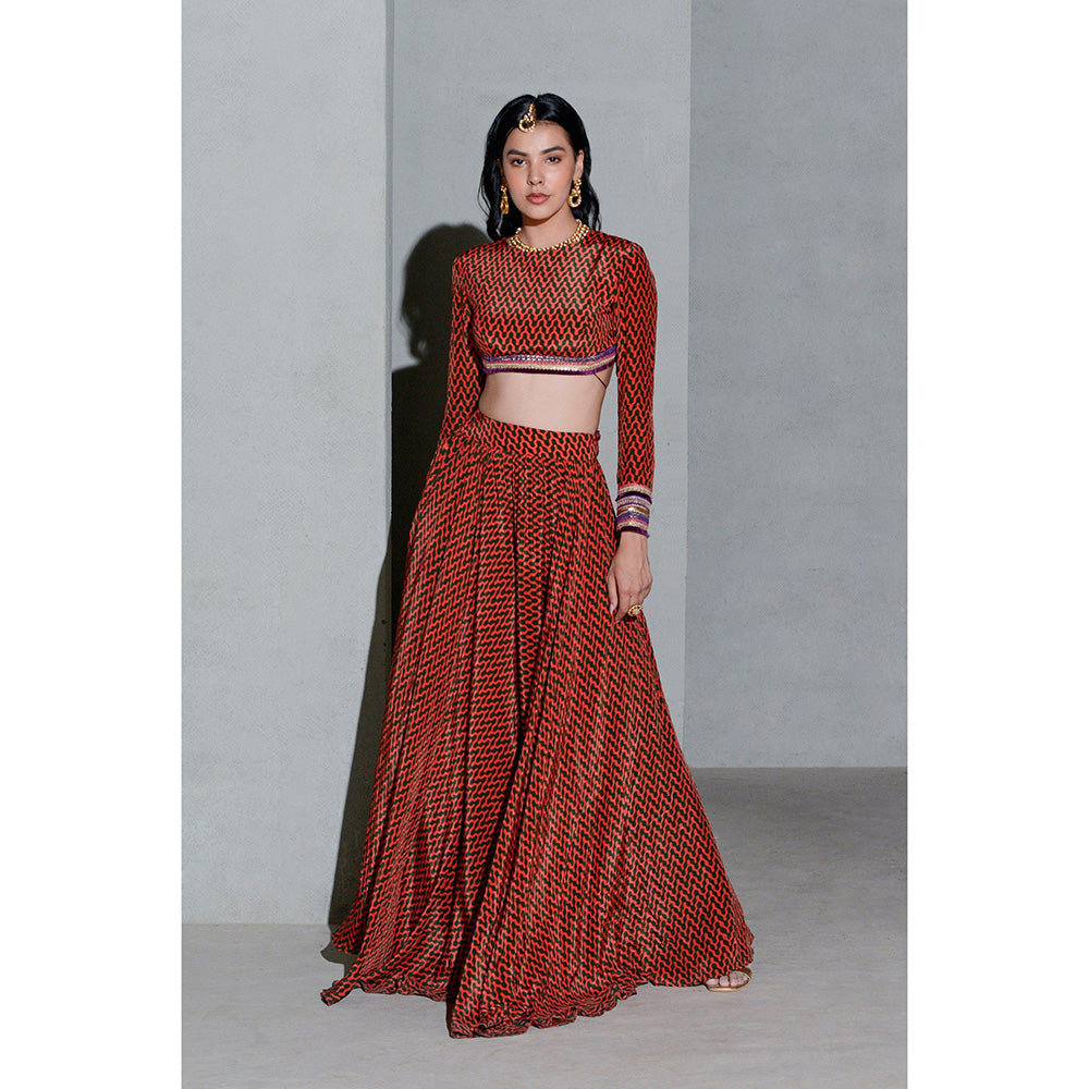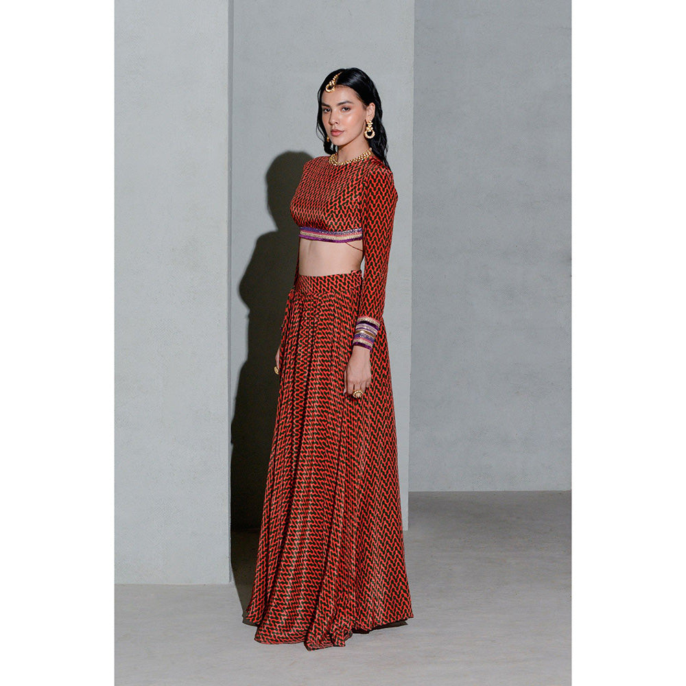 Description : Slay all day long in style with Rishi & Vibhuti red top and skirt. It features printed pattern with full sleeves, round neck and high waist bottom style. It is made from premium quality fabric. This outfit is perfect for festive, wedding or special occasions.