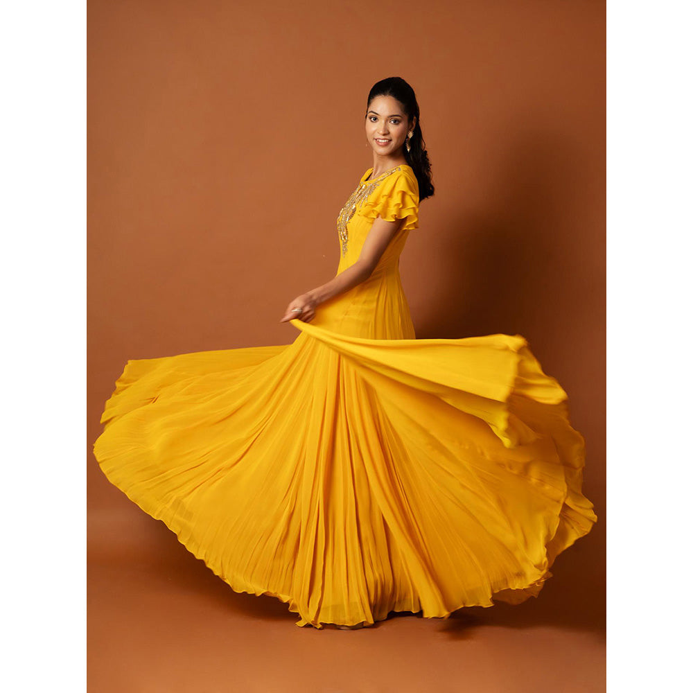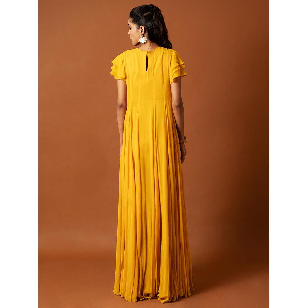 Ritambh by Rishi & Sachin Rosa Yellow Frill Gown