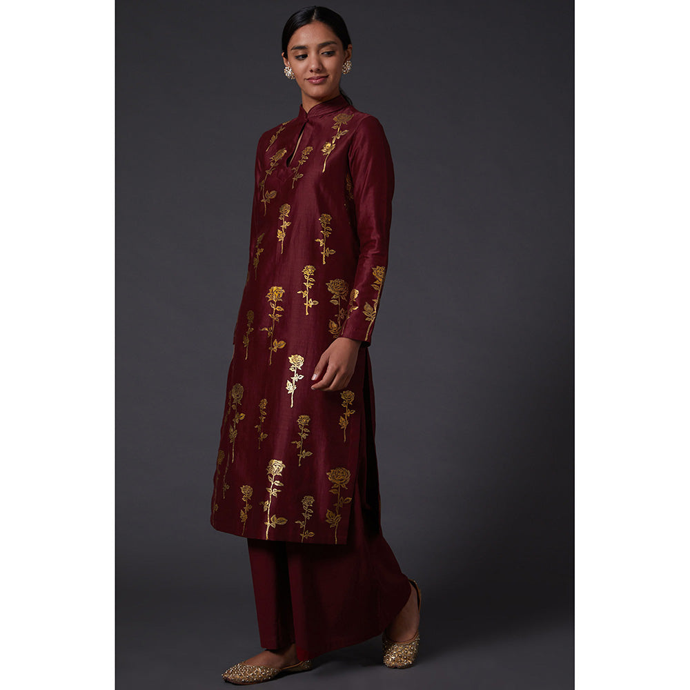 Rohit Bal Wine & Gold Block Printed Kurta & Palazzo (Set of 2)