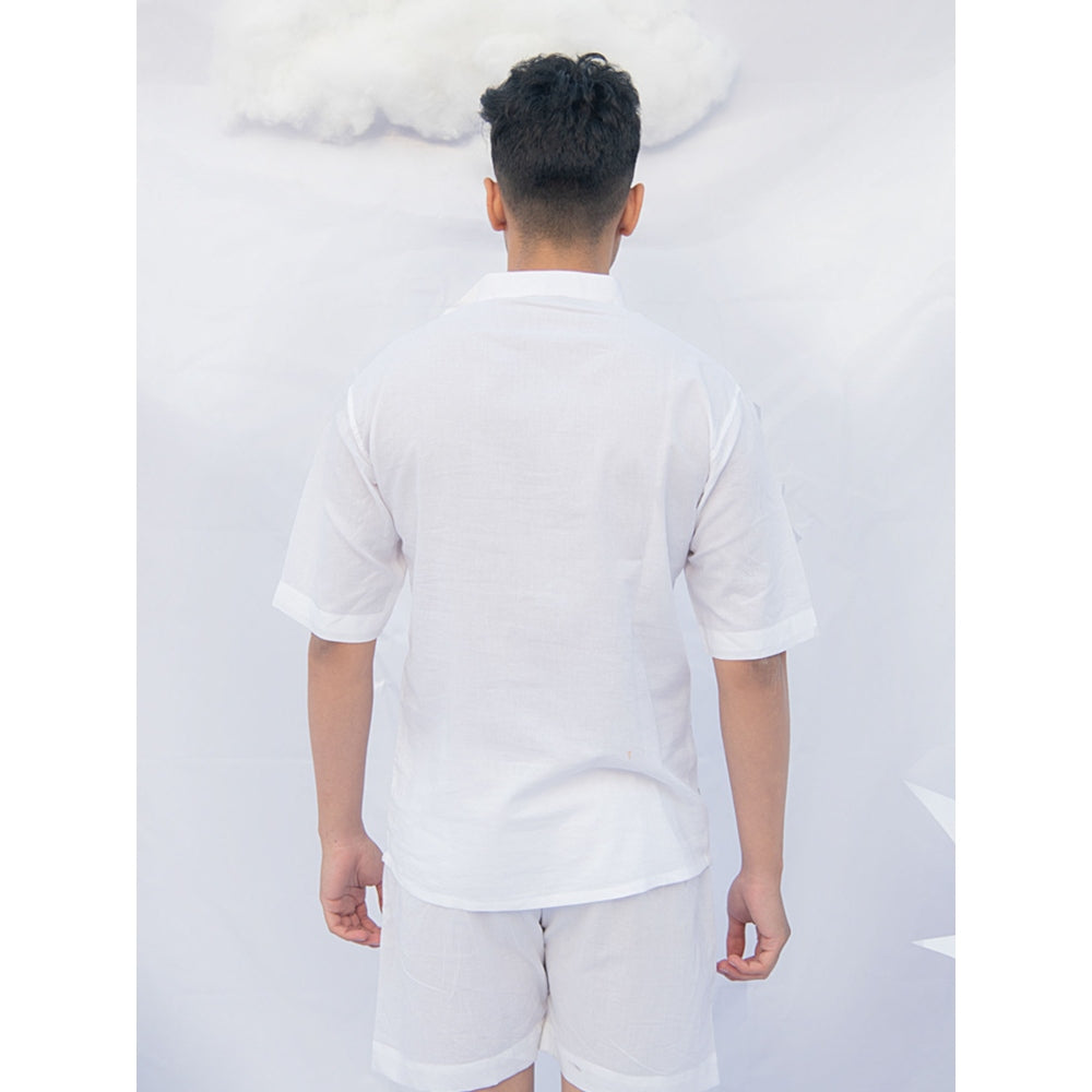 Description : This multi-colour cotton shirt from Runit Gupta will make a charming addition to your wardrobe for the summer-spring season. The silhouettes are comfortable and windy with half sleeves and a collar neck. Hand embroidered by artisans and inspired from the botanical Farmland in the shades of hue. Pair it with floral shorts and sliders to complete the summer look.