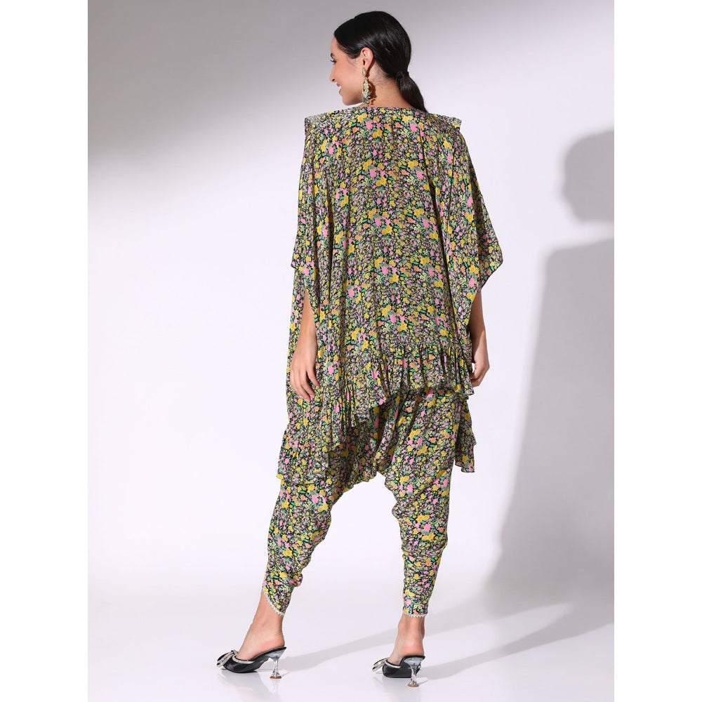 Sakshi Girri Black Ruffled Kaftan with Bustier and Dhoti Pant (Set of 3)