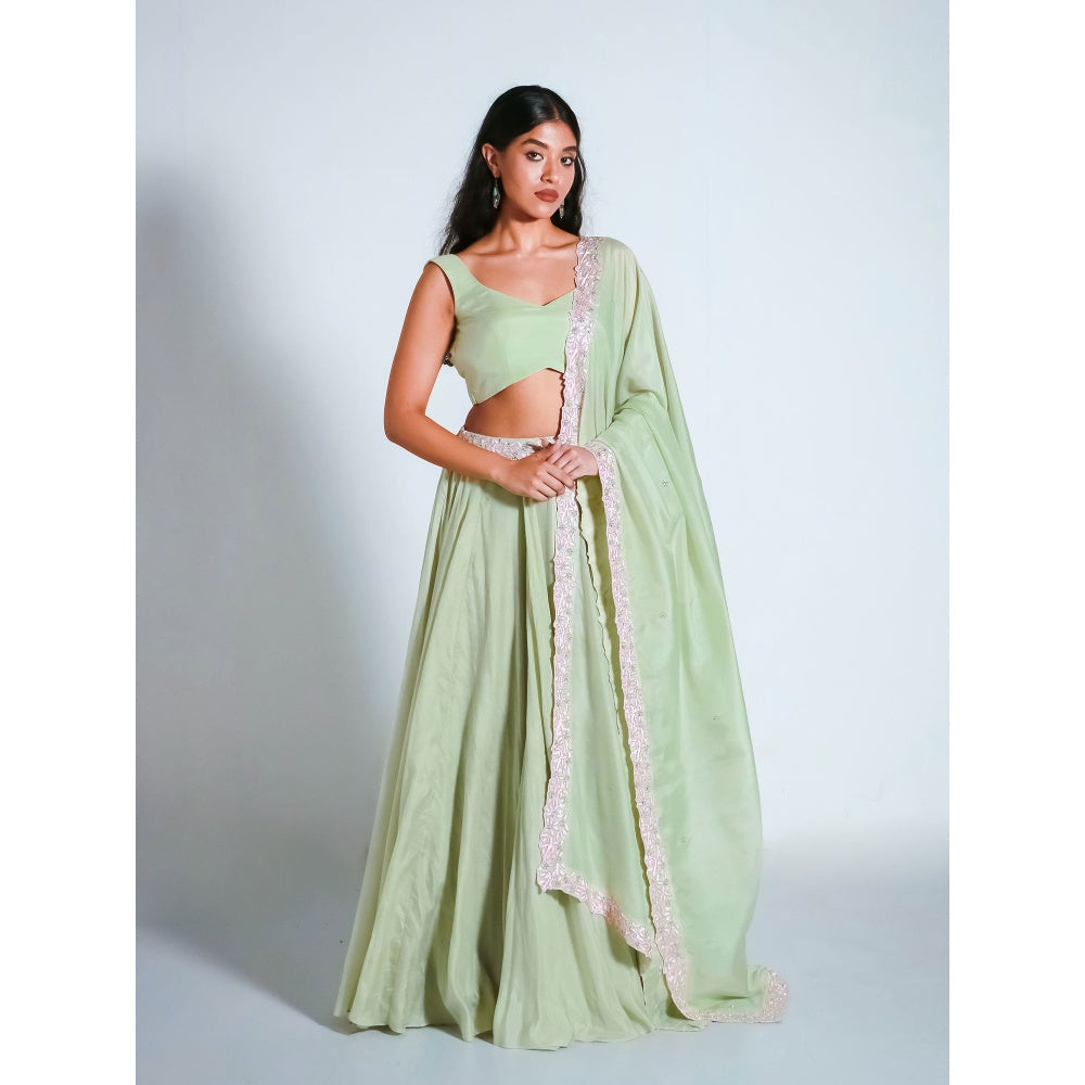 Shahmeen Husain Green Embroidered Lehenga And Choli With Dupatta (Set of 3)