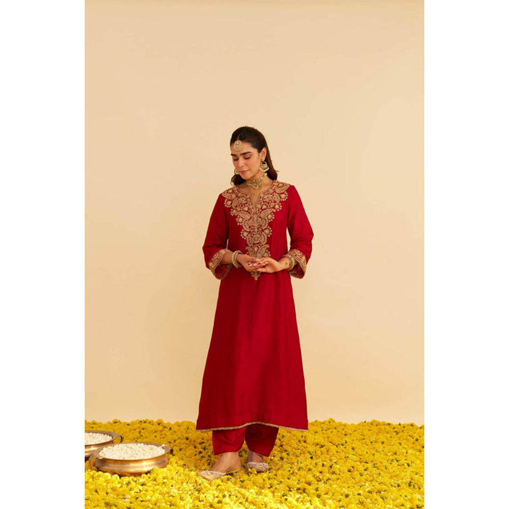 Sheetal Batra Hiba - Deep Red Long Kaftan With Salwar And Dupatta And Dupatta