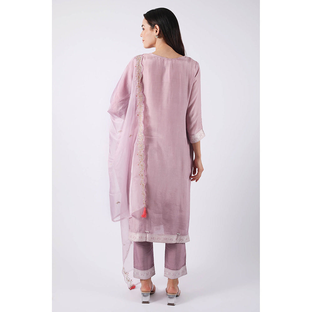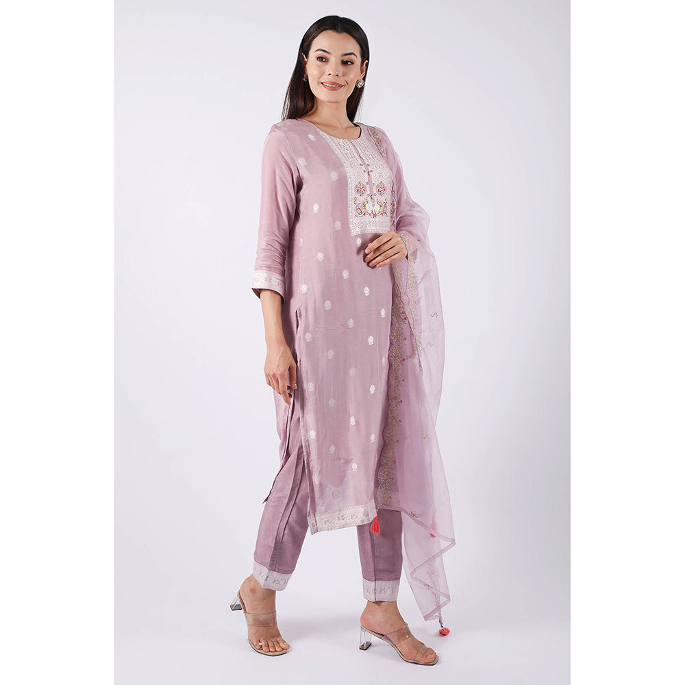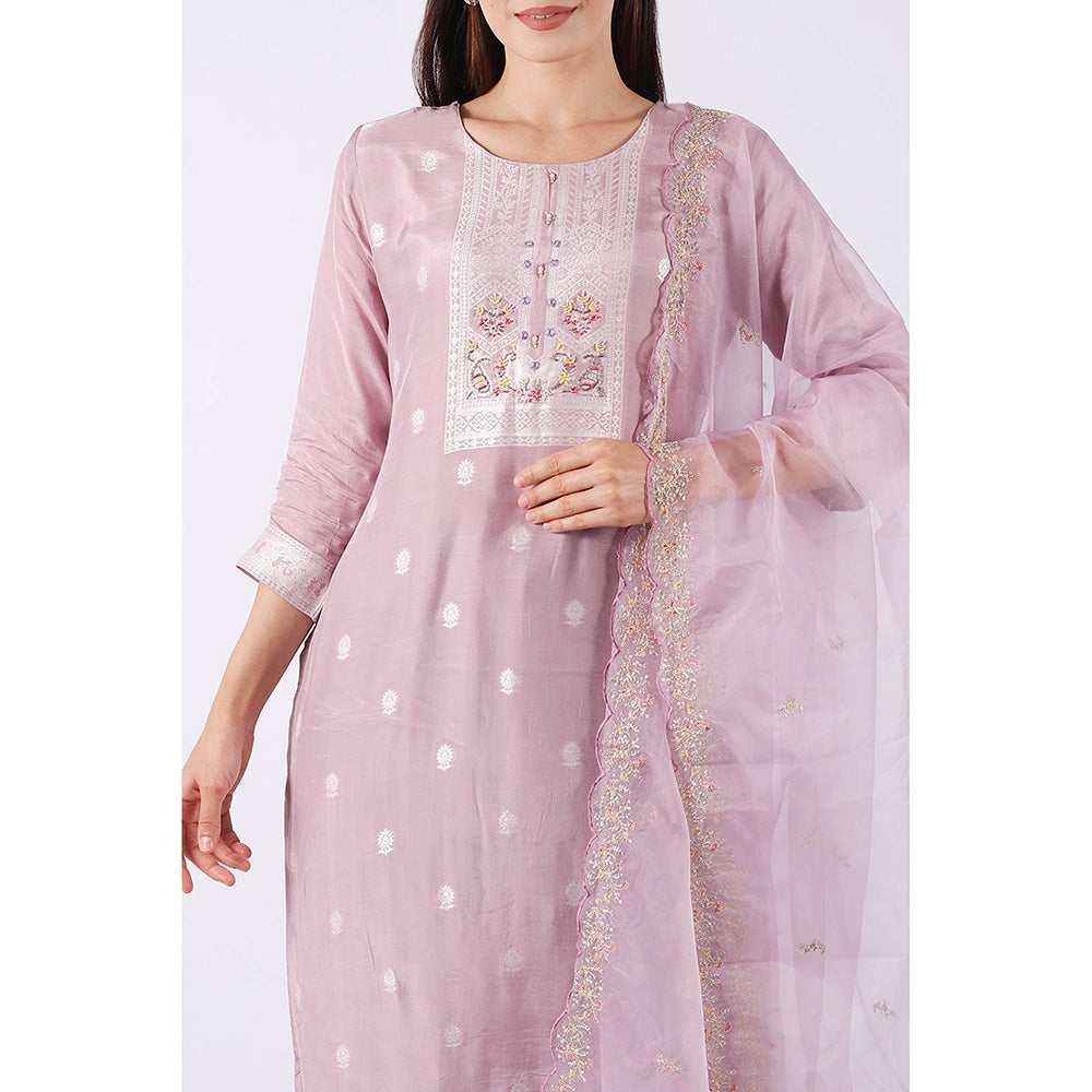 SHRUTI GOYAL Lavender Embroidered Kurta with Pant and Dupatta (Set of 3)