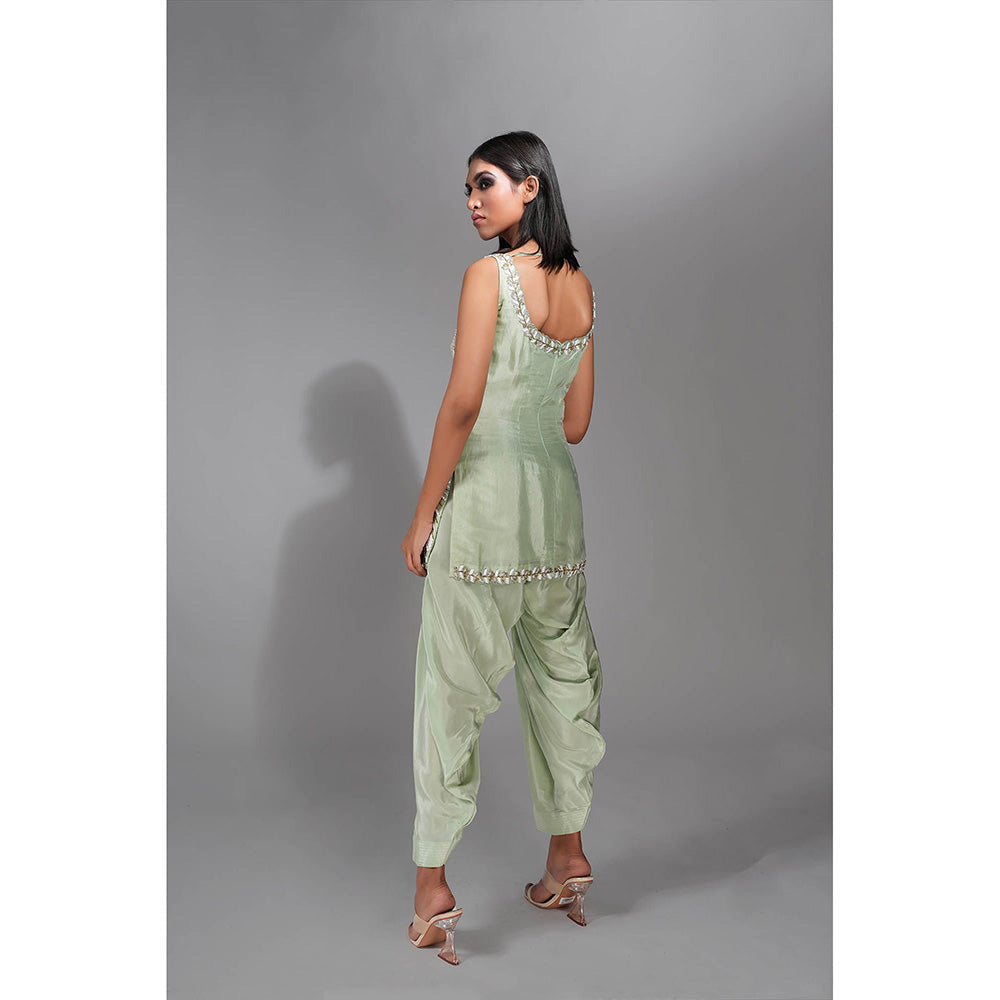 Description : Step Into The Enchanting World Of "Pearl Of The Ocean" With This Exquisite Shruti S Salwar Suit, Meticulously Crafted For All Occasions, Whether Small Gatherings Or Grand Celebrations. The Silk Kurta Is A Canvas Of Intricate Hand Embroidery, Adorned With Different Sizes Of Pearls, Sequins, And Katdana, Creating A Harmonious Blend Of Elegance And Sophistication. This Three-Piece Ensemble Comprises A Crepe Salwar, A Silk Kurta, And An Organza Dupatta. A Crepe Salwar Complements The Silk Kurta Beautifully, Ensuring A Perfect Fusion Of Comfort And Style. The Organza Dupatta Adds A Layer Of Grace, With Delicate Hand-Made Pearl Tassels Adorning Its Edges, Bringing A Touch Of Femininity To The Outfit. Shop Online For This Indian Ethnic Masterpiece, A Hand-Embroidered Salwar Suit Designed By The Acclaimed Fashion Designer Shruti S From India. Suitable For Women Of Any Age And For Any Occasion, This Salwar Suit Is A Versatile Choice That Radiates Timeless Beauty. This Off-White And Sage-Green Salwar Suit From Shruti S, An Eminent Indian Couture Label, Is Perfect For Mehendi, Engagements, Sangeet, And Weddings. Whether Worn By The Bride, Bridesmaid, Or Any Attendee, This Dress Brings A Touch Of Glamour To Any Event. Shruti S Takes Pride In Providing Bespoke Tailored Outfits With A Size Range From Xs To 6Xl, Ensuring A Personalized Fit For Every Body Type.