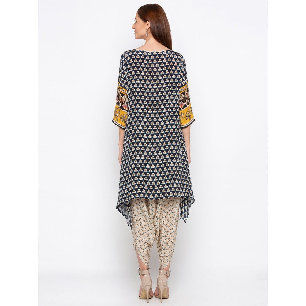Description : Printed Kurta Highlighted With Mirror And Gold Embroidery. Kurta Is Paired With Dhoti
