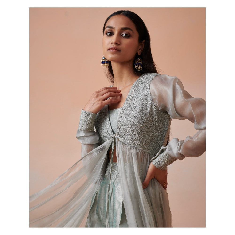 SUHINO Grey Organza Co-Ord (Set of 3)