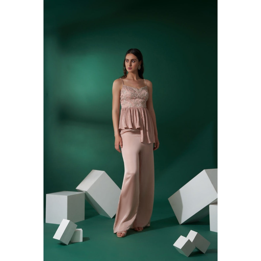 Description : Adorn the styles specially made for you with this beige set from Suruchi Parakh. Made from high quality satin, it features zipper closure and embroidered pattern along with sleeveless & shoulder straps design. Pair it with trendy footwear to elevate your look.