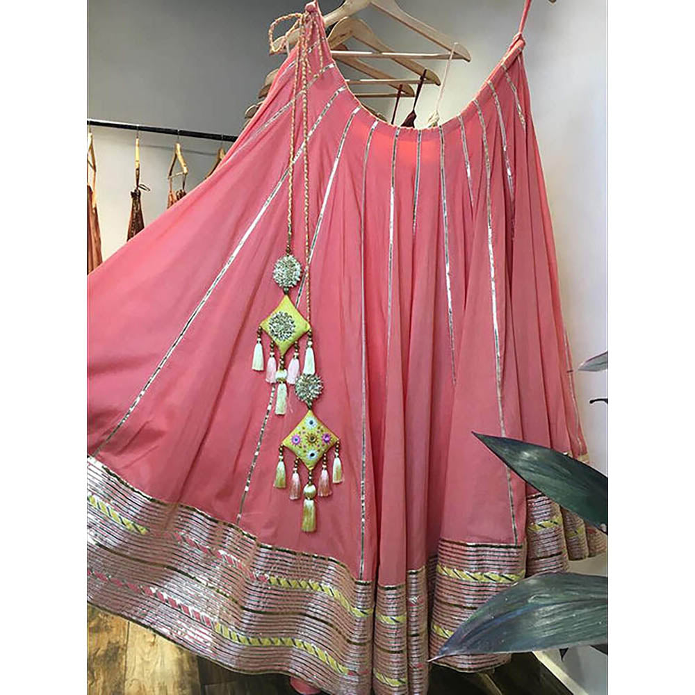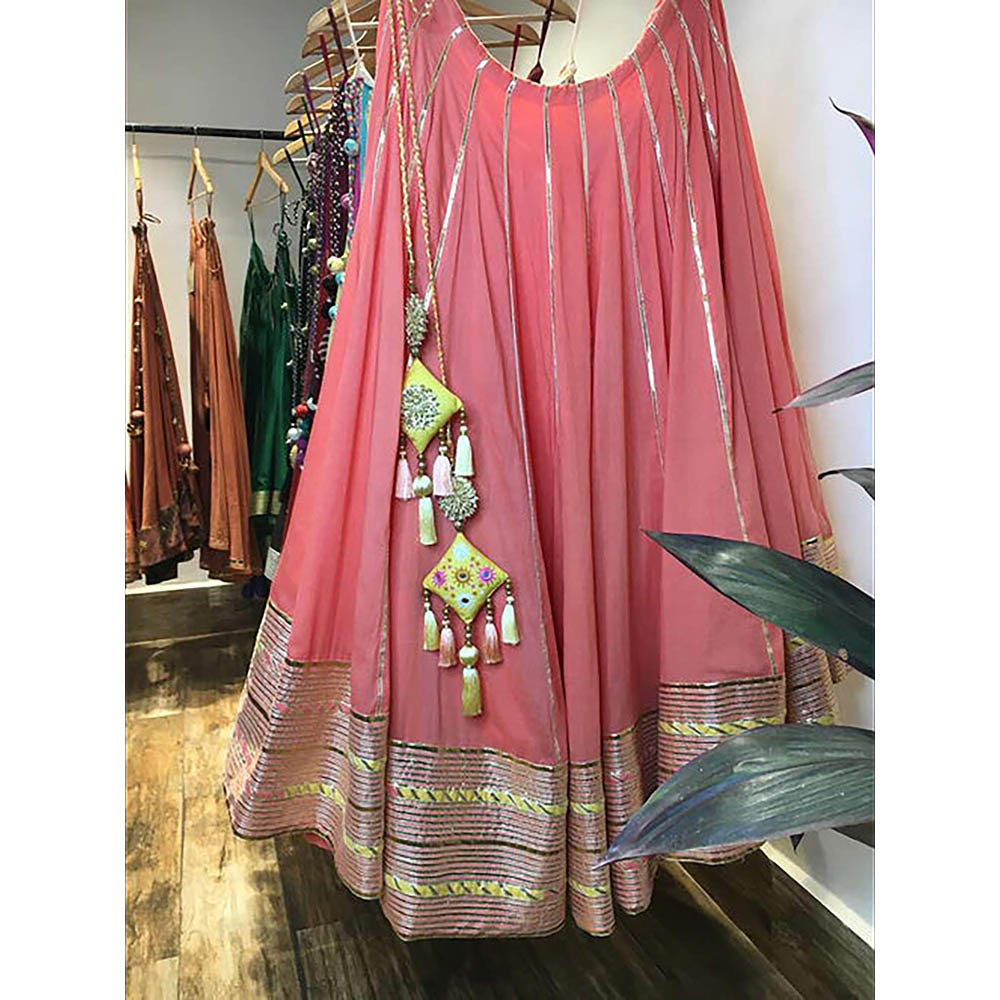 Taraasi Gul badan Coral Mulmul Cotton Kalidar Ghaghara Skirt