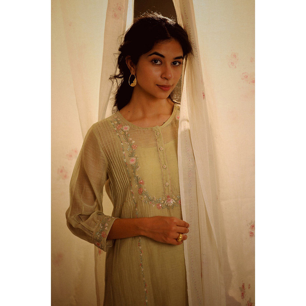 Tatwa Designs Sage Green Camellia Kurta (Set of 3)