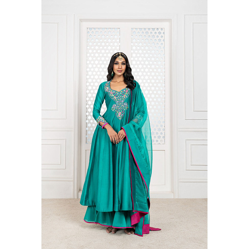 THE AARYA Green Handwoven Chanderi Embroidered Anarkali (Set of 3)