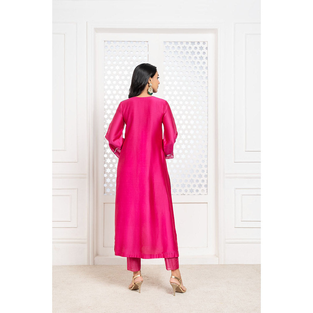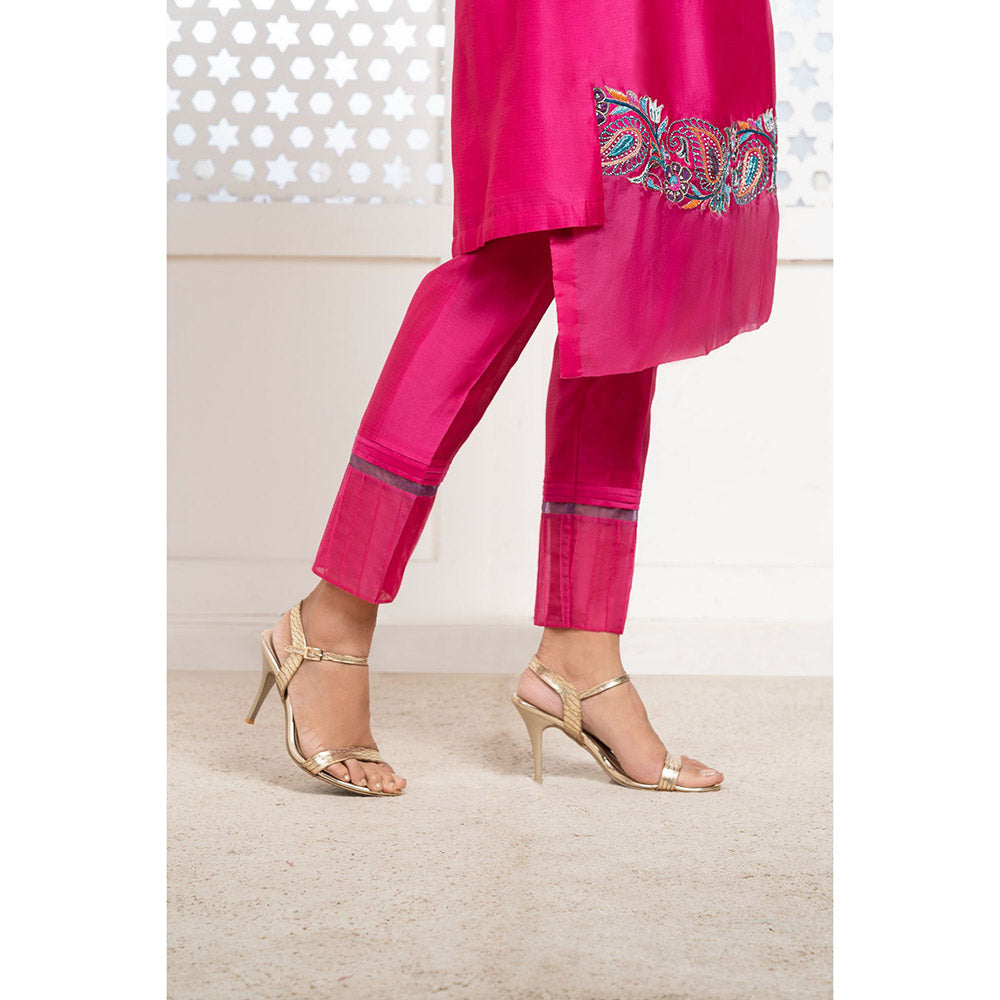 THE AARYA Pink Handwoven Chanderi Embroidered Kurta (Set of 3)