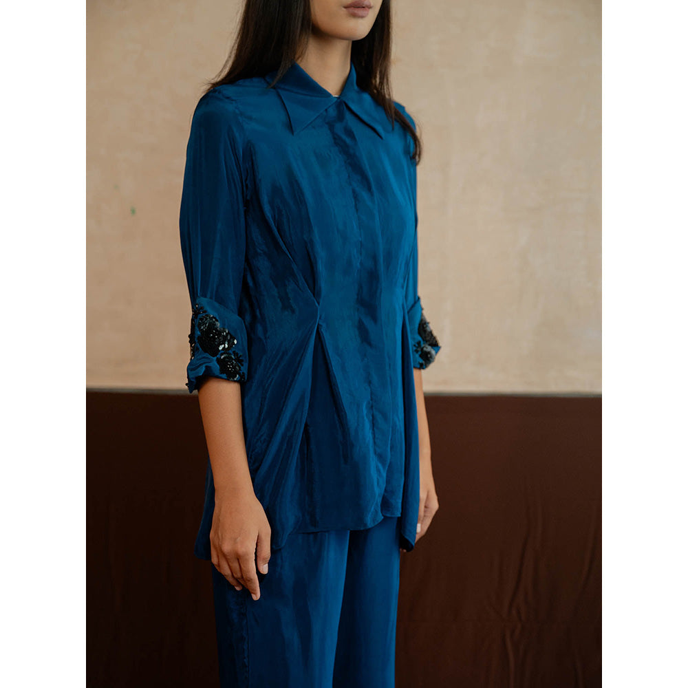Blue Embroidered Cuff Co-Ord (Set of 2)