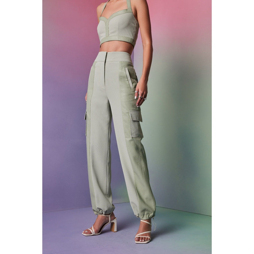 Description : Flaunt your style with this green solid pant from The Dapper Lady. Made from high-quality blended fabric, this high-waisted pant features a front closure. Style it with crop top, minimal jewellery and sandals to complete the ensemble.