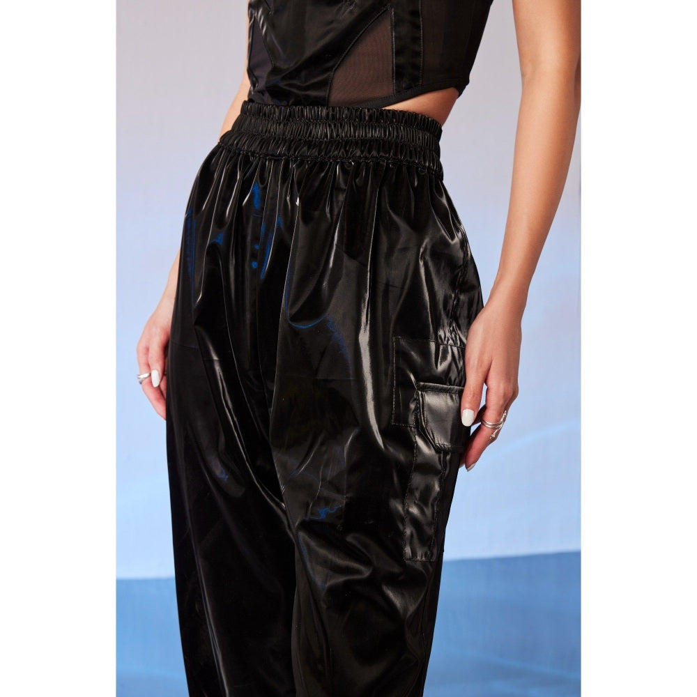 Description : Flaunt your style with this black solid jogger from The Dapper Lady. Made from high-quality polyester, this high-waisted jogger features an elastic closure. Style it with crop top, minimal jewellery and sandals to complete the ensemble.