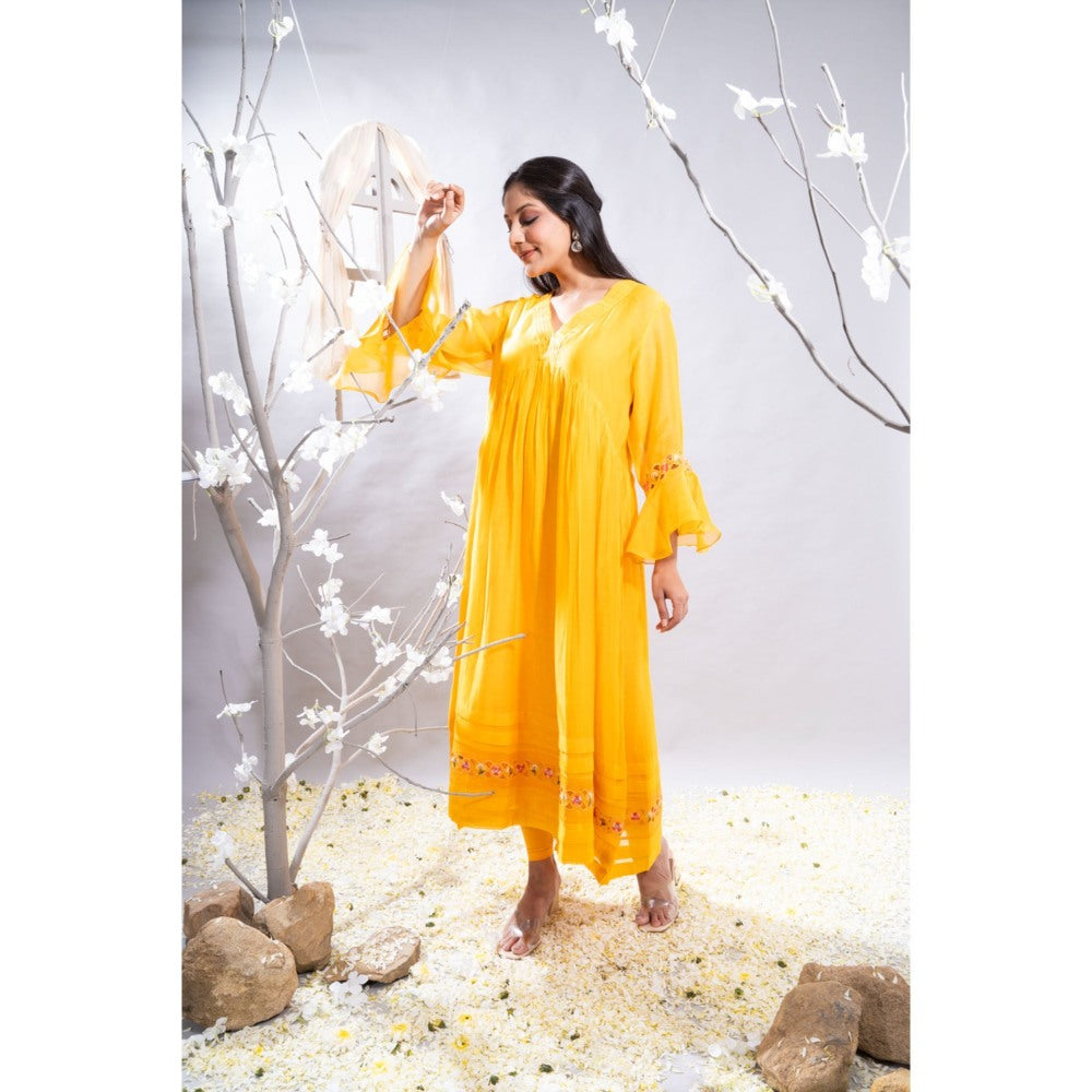 The White Tree Studio Aftab Gathers & Cutwork Organza Border Kurta with Pant & Inner (Set of 3)