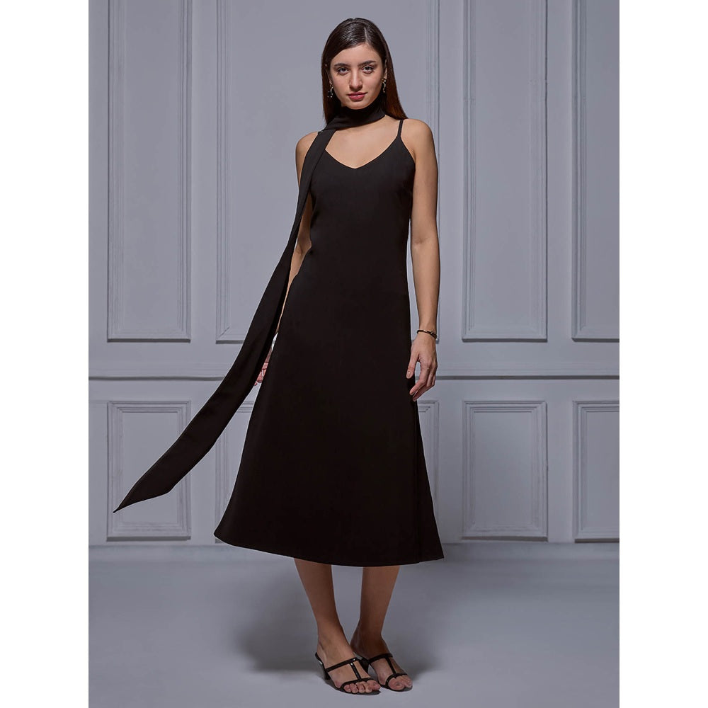 Torsha Black Grace Midi Dress with Stole for Women