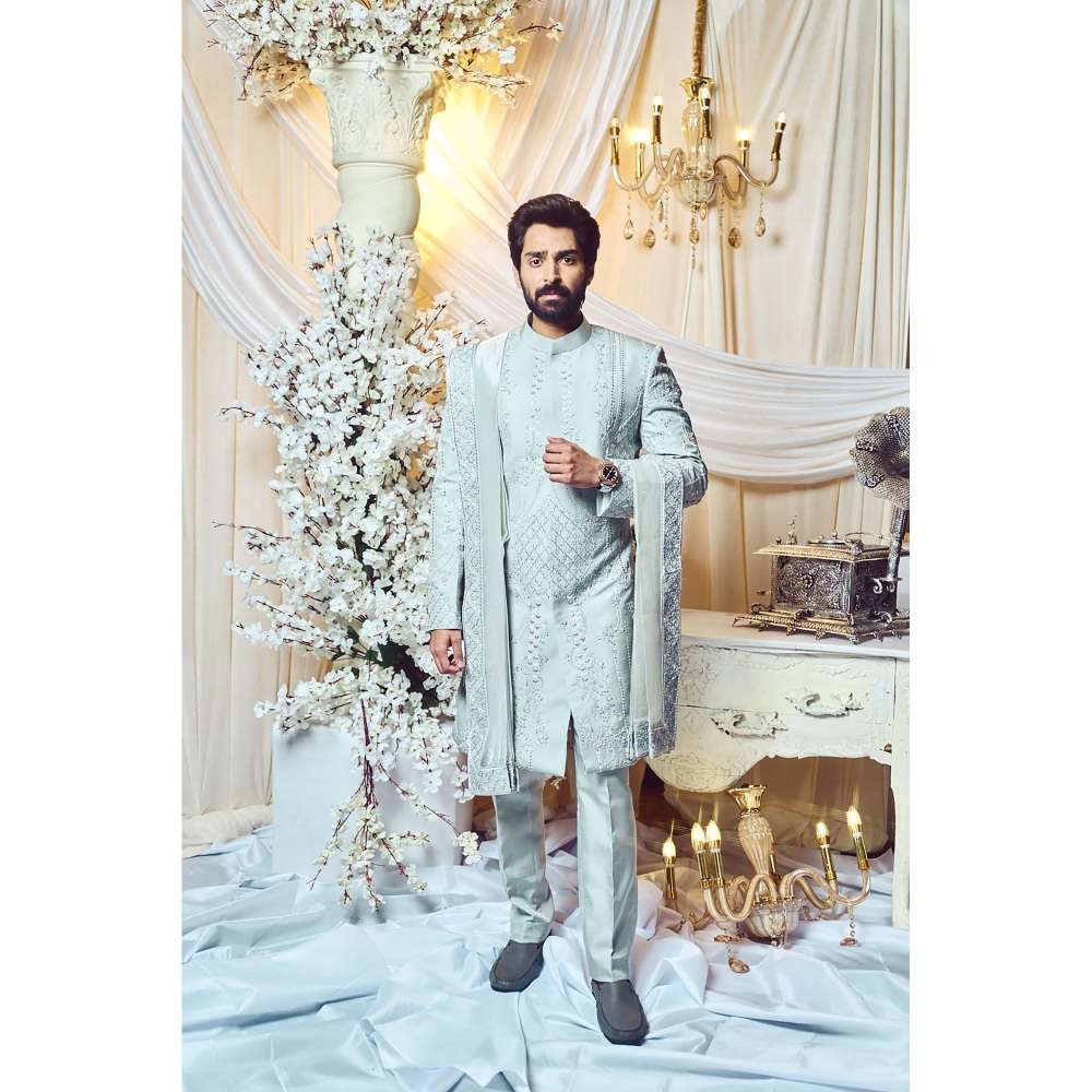 Varun Chakkilam Silver Charm Deco Sherwani and Trouser (Set of 2)