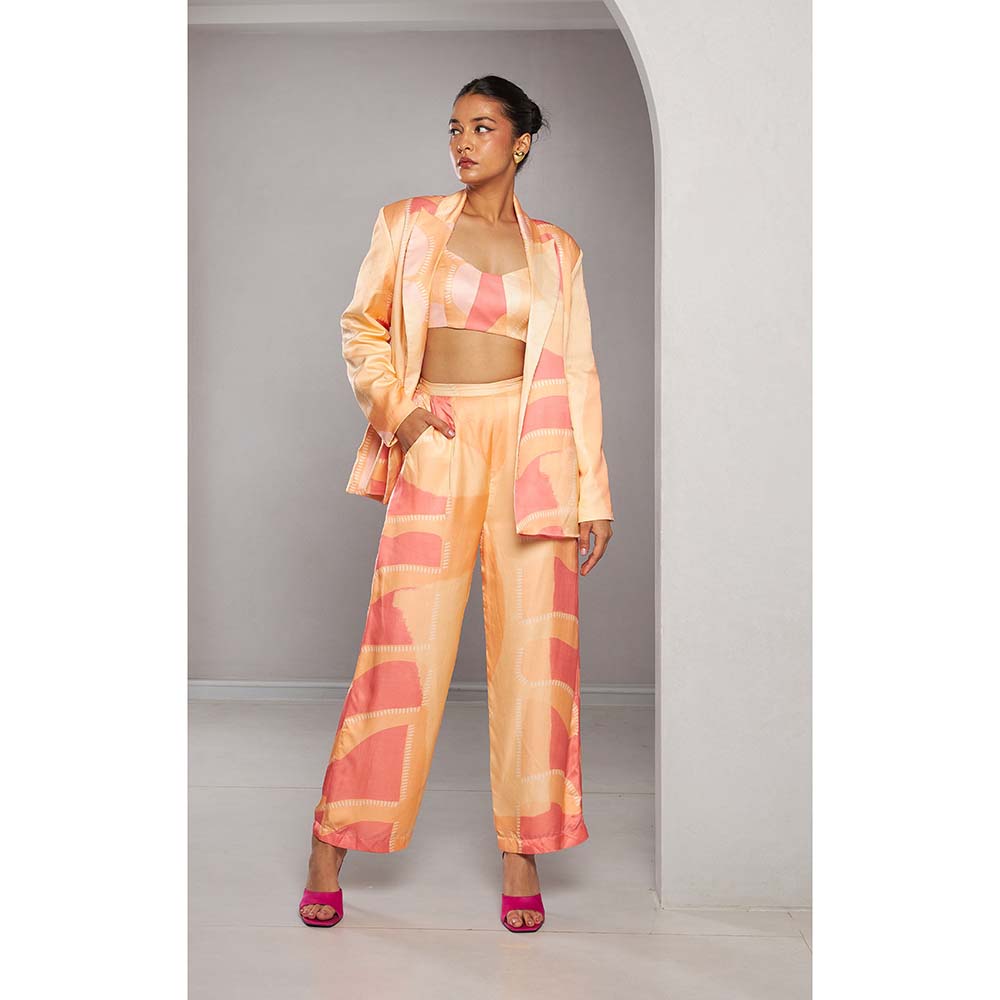 Description : Monotone Blazer Set with Bustier and Pants In Shades Of Orange