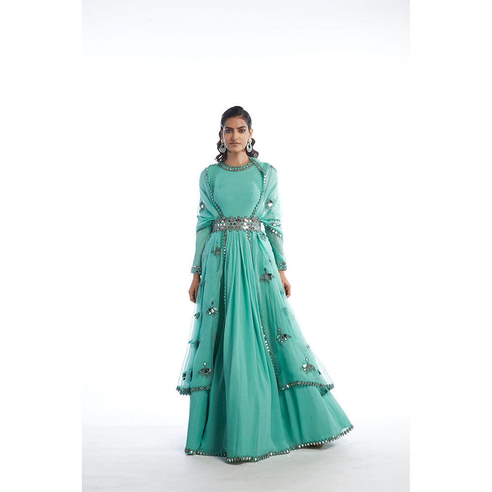Vvani by Vani Vats Dull Mint Chiffon Anarkali Kurta & Dupatta (Set of 2)