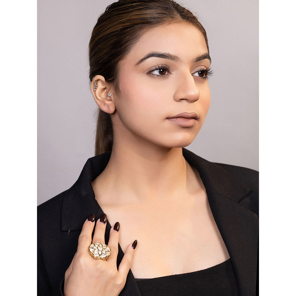 XAGO Le Iramo Gold-Plated Kundan Mossanite-Studded Adjustable Ring
