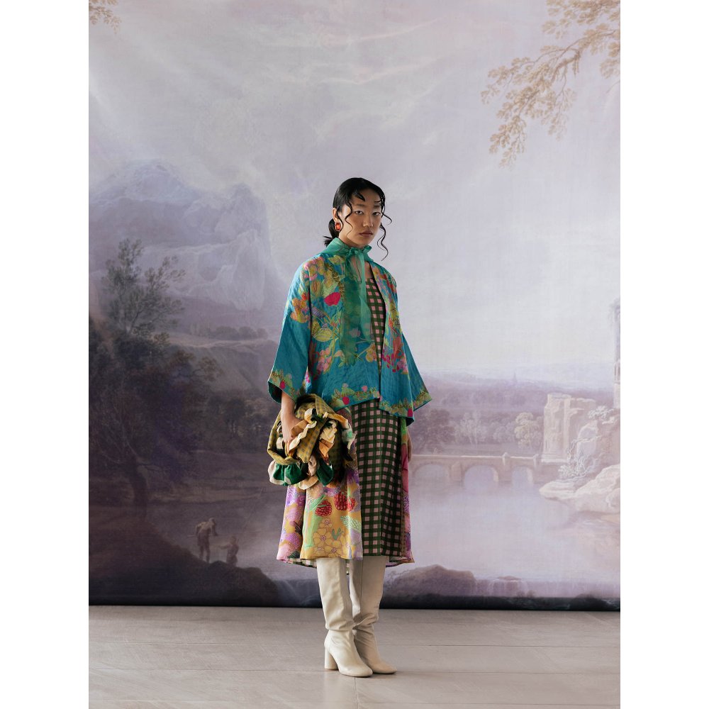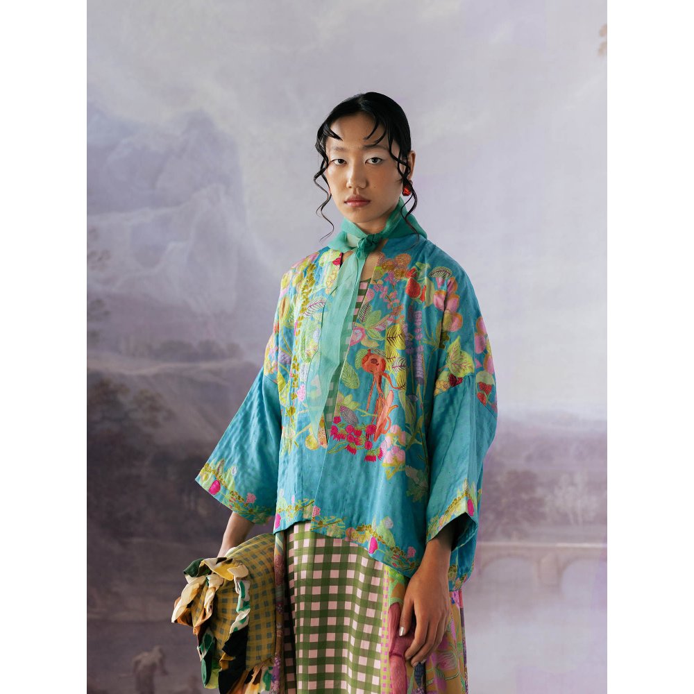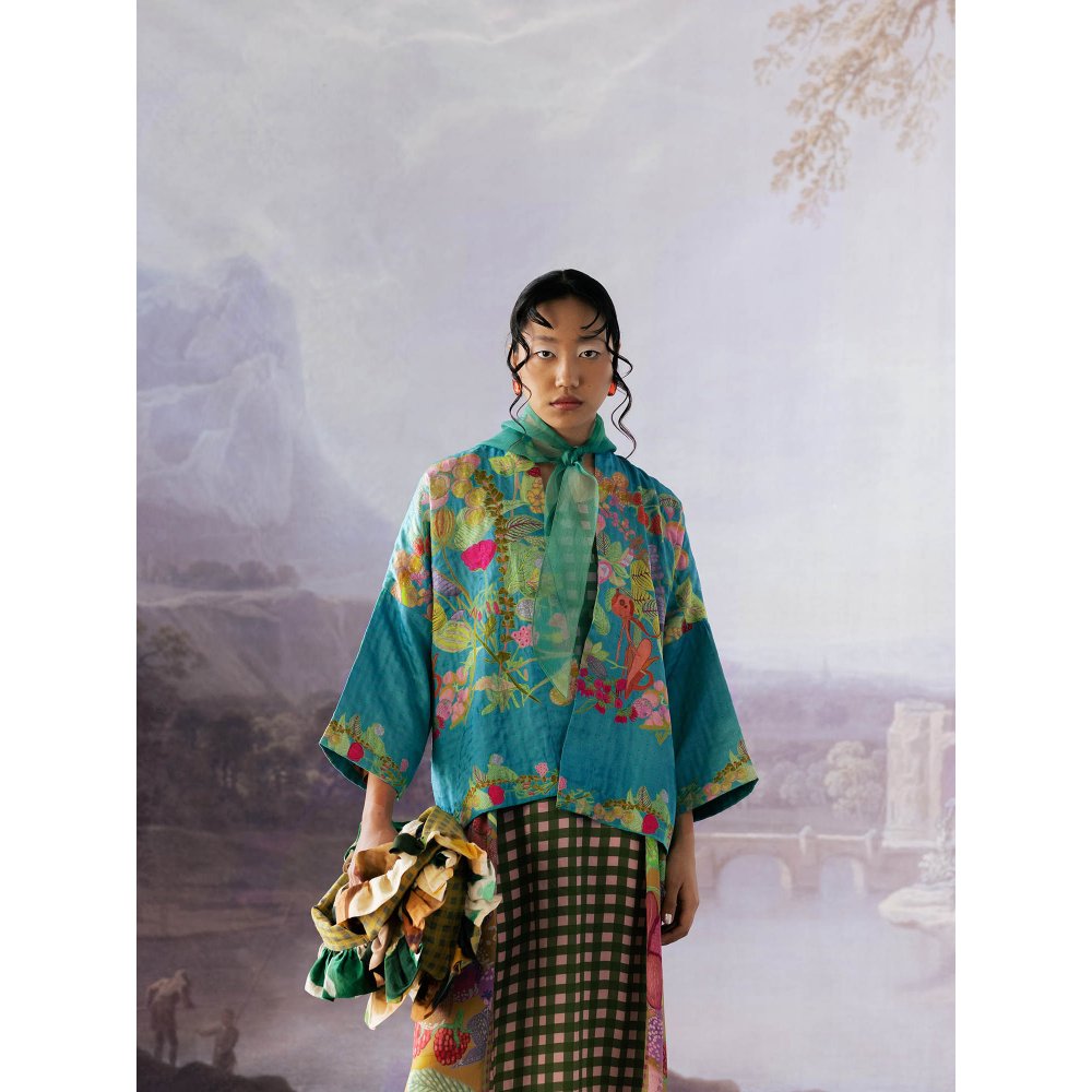 Description : Level up your look with this multi-colour overlay from YAVI. Crafted from silk in a comfortable fit, it is finished with full sleeves. Team it with a pair of jeans and sleek wedges.