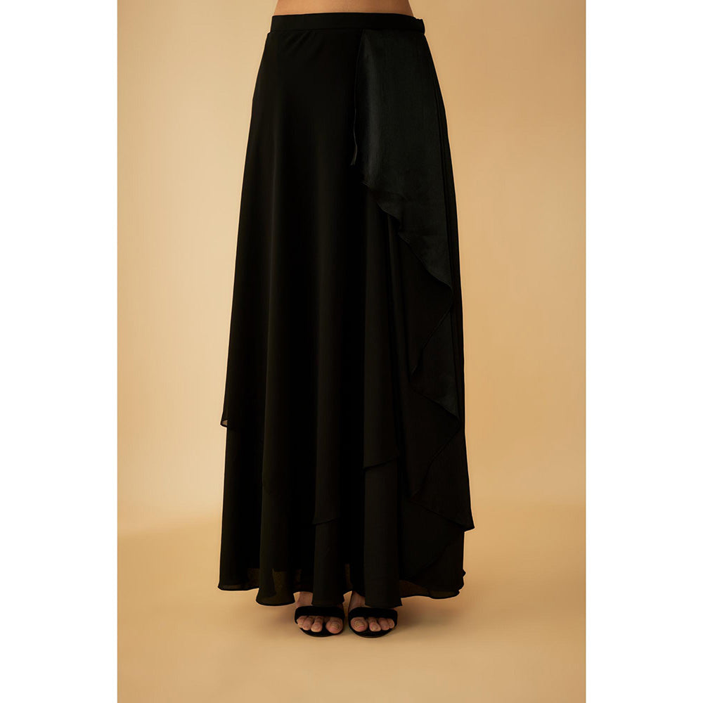 1999AD Black Embroidered Jacket With Stitched Blouse And A Drape Lehenga (Set of 3)