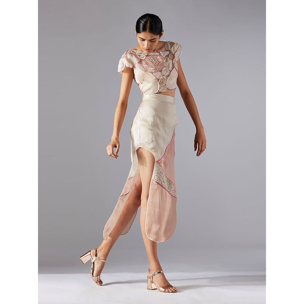 Description : Lend a fashionable edge to your western wear collection with this skirt set from A Humming Way. Crafted from organza, the crop top features an embellished pattern, and the skirt has a straight silhouette. To achieve a classy and refined look, pair it with block heels and a sling bag.