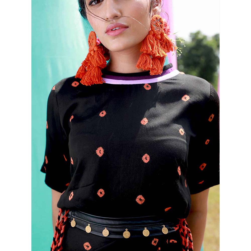 Aapro Label Bandhej T-Shirt Wrap Dress - Black