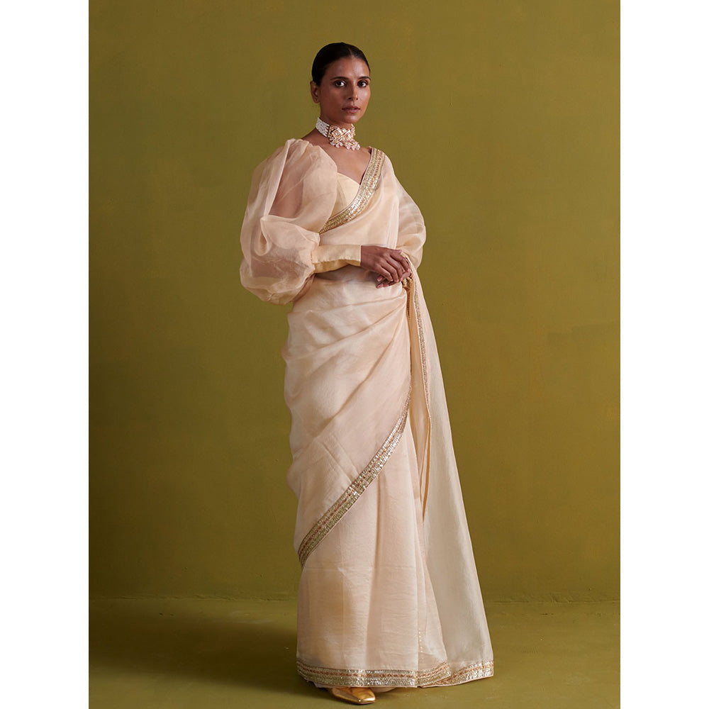 Aarti Sethia Studio Beige Saree with Stitched Blouse and Petticoat
