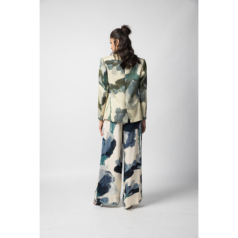 Description : A Pair of printed trousers. Best paired with Marble Blazer. COLOR: MULTI COLOR FABRIC: SATIN TWILL