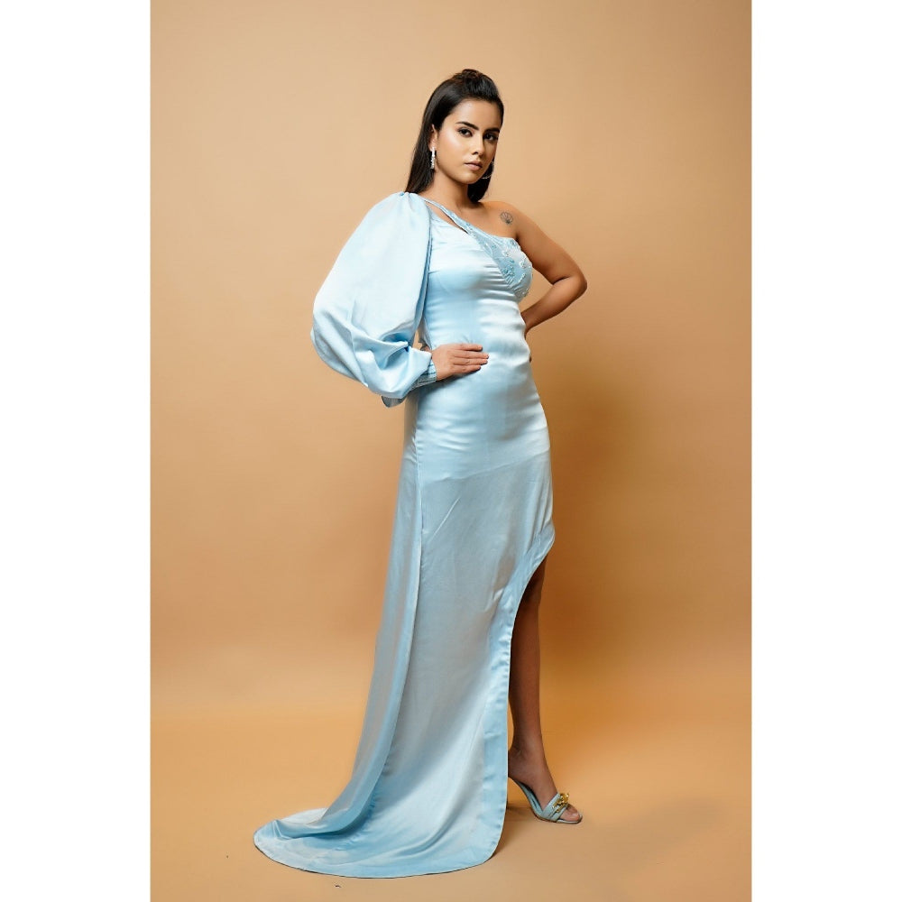 Ahi Clothing Baby Blue Sheath One-Shoulder Sleeve Tail Dress